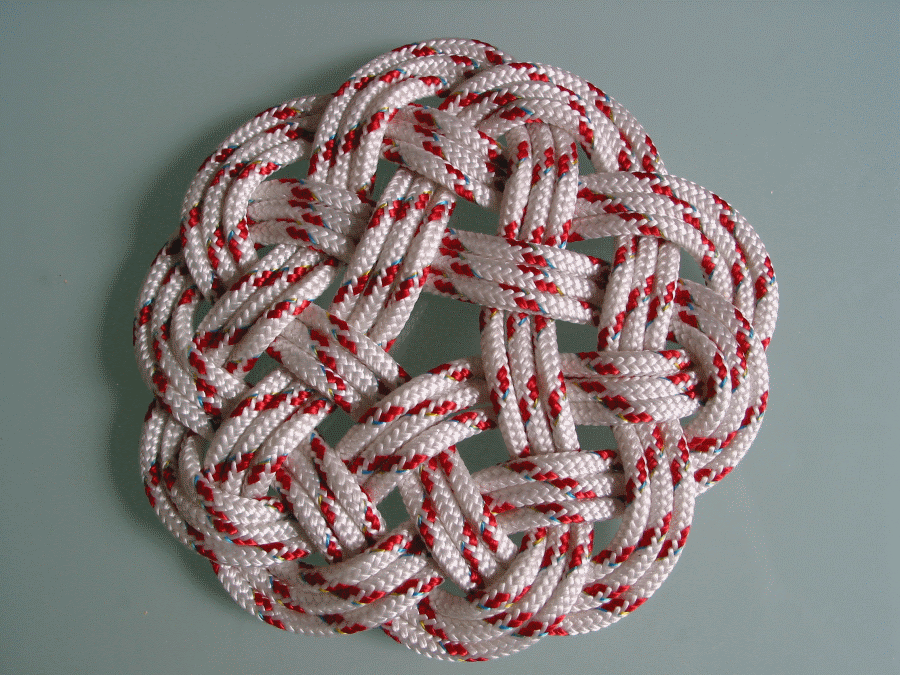 Noeud de Piton 10 Anses en Tresse Carree, mono brin, probablement le noeud le plus complexe à réaliser