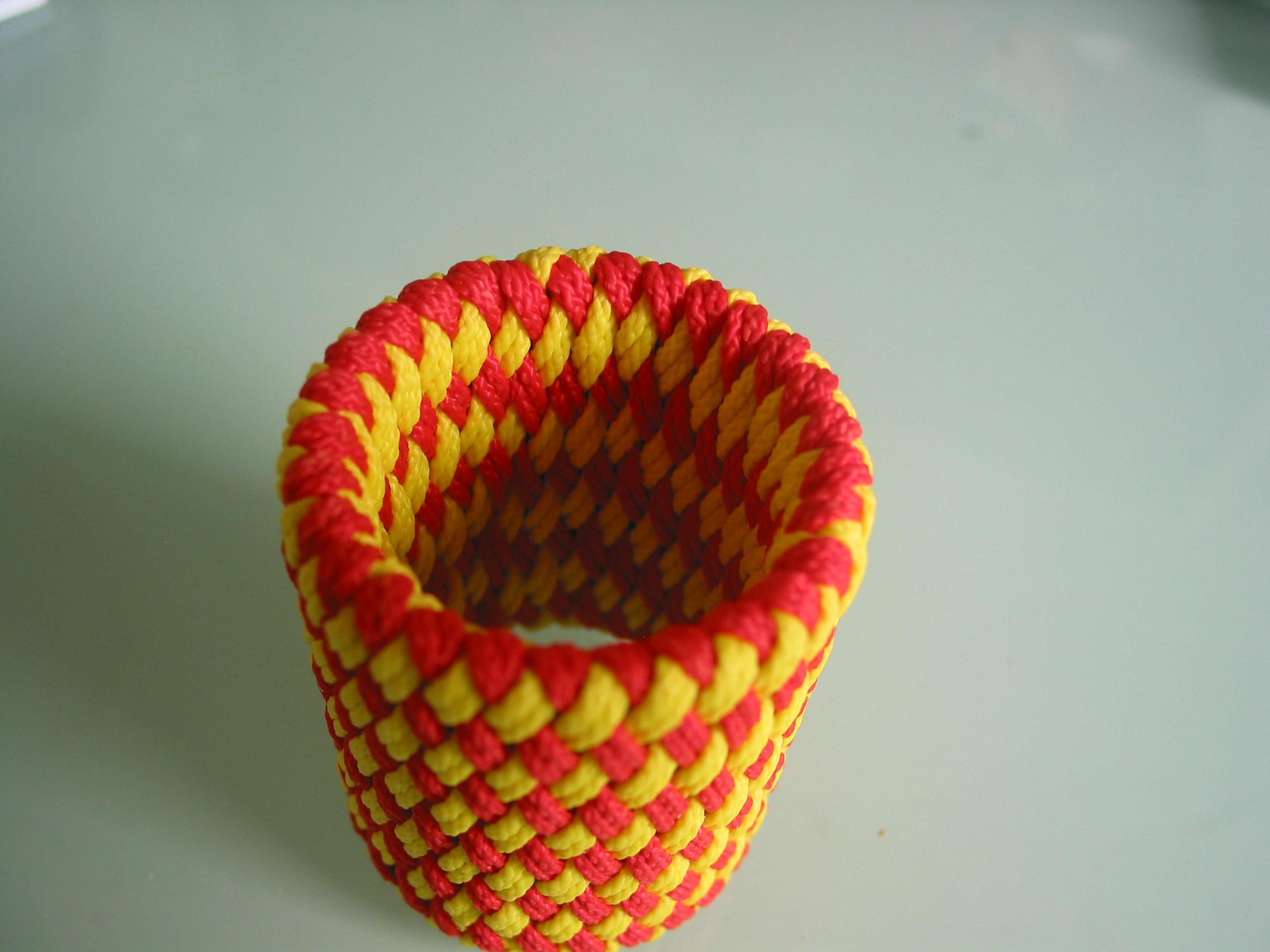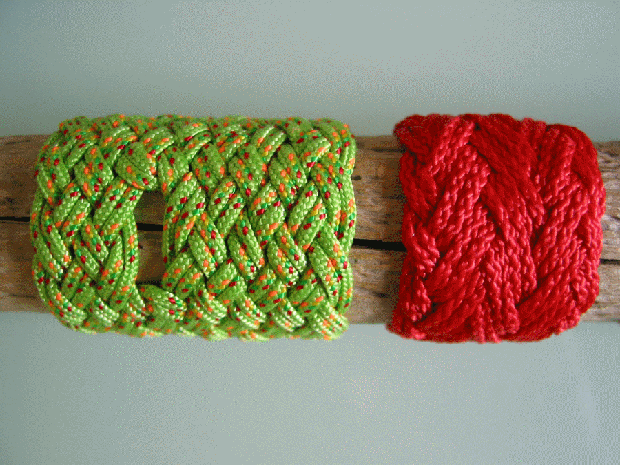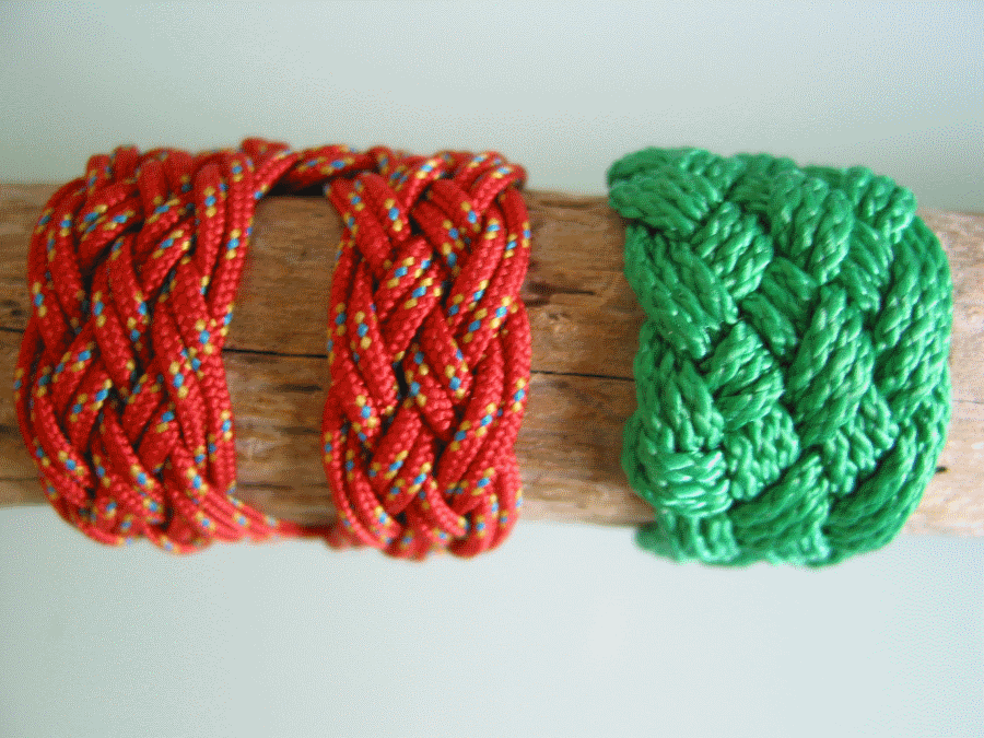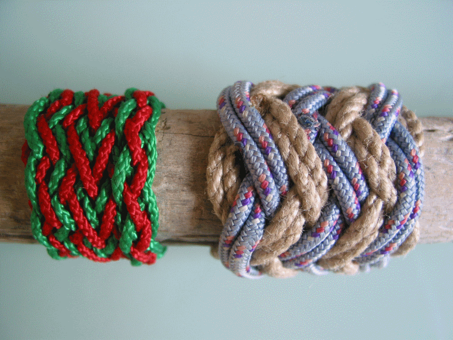 Noeuds Cylindriques : Rouge/Vert Dragon Scales 20L18B et Bleu/Chanvre Herringbone 10L8B 2Pass